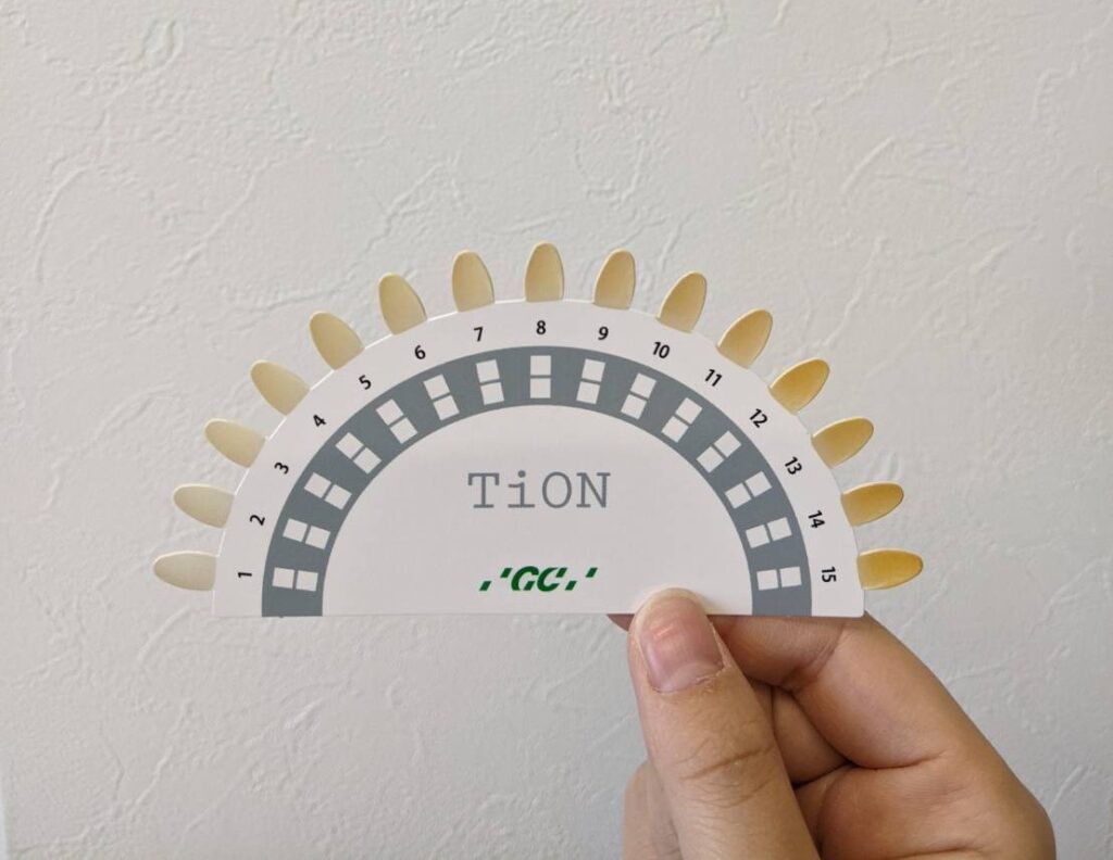 ⑥歯の色の確認‥‥シェードガイドという色の見本を使いながら現在の歯の色を確認して写真を撮ります。